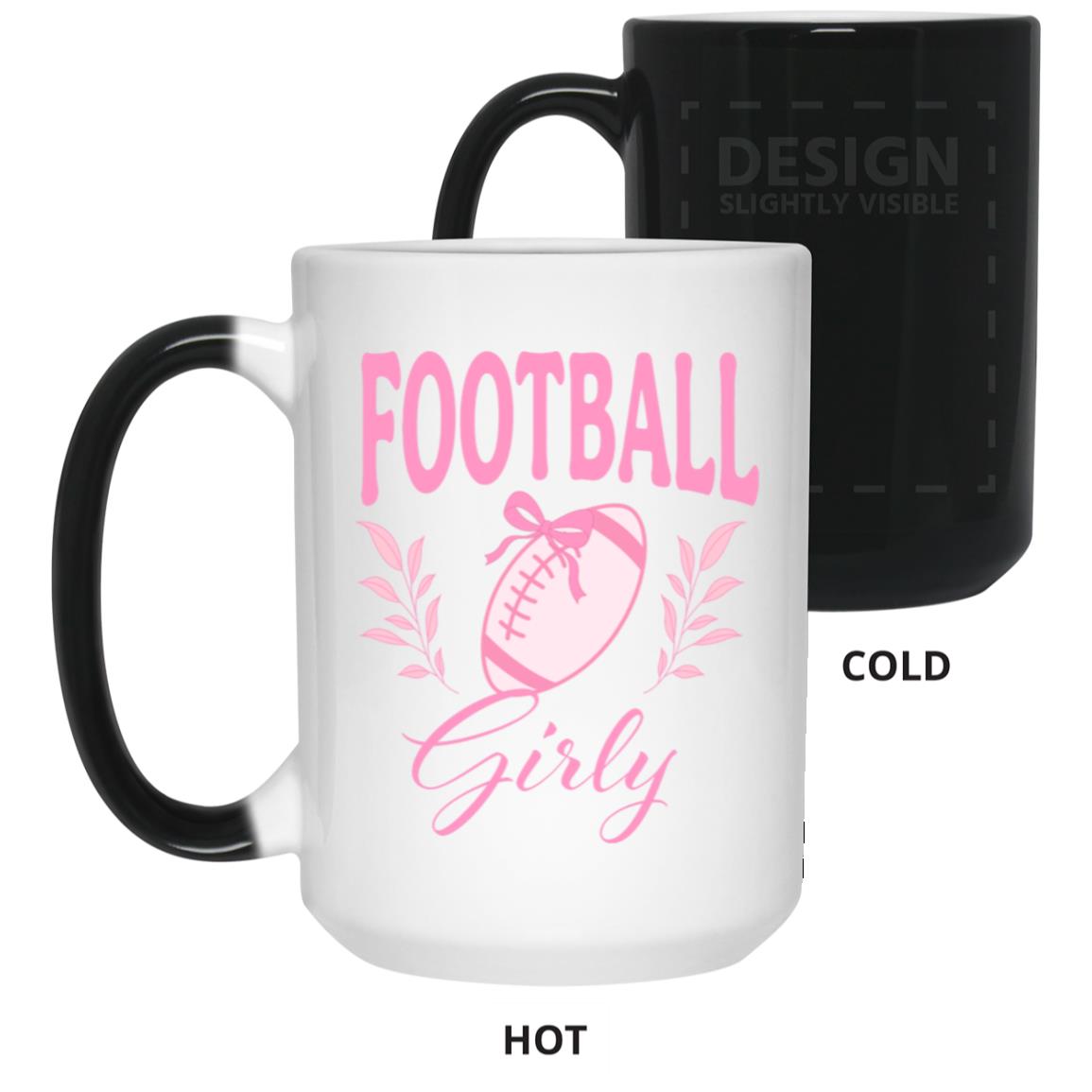 Embrace elegance with our Football Girly Color Changing Mug, featuring a design that magically transforms as you pour in your favorite hot drink. Show off your love for football with a twist of girly flair, making this mug a standout piece in your collection.
