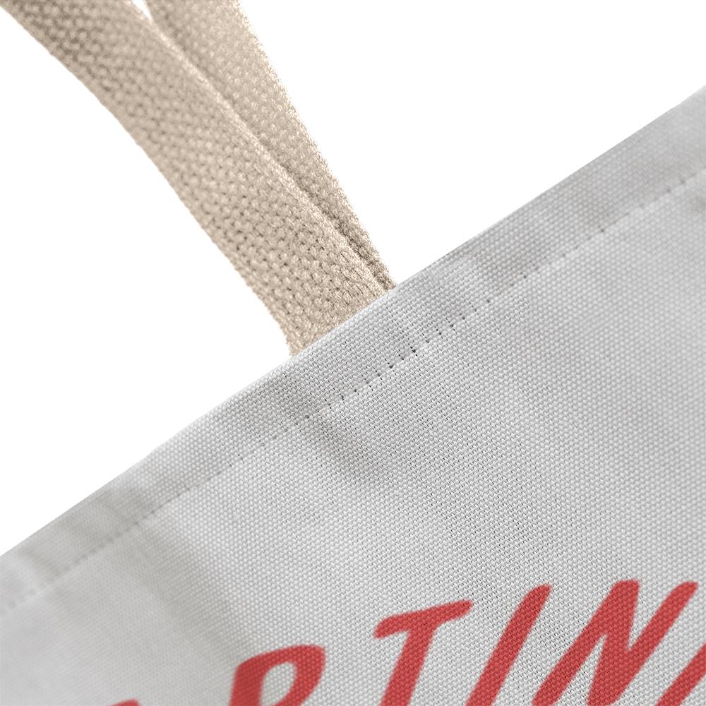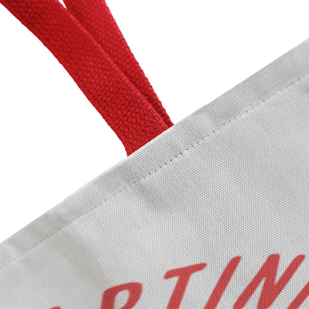 This tote is constructed from soft, lightweight polyester with a nonwoven laminate lining and features a unique design. Your tote bag will be custom made upon order. You can expect a professionally printed design on both sides, making this a piece that can be treasured for a lifetime. Further your customization by choosing between 5 handle colors.