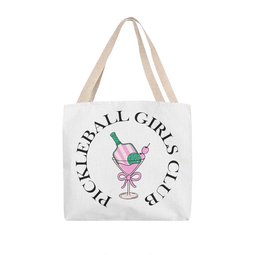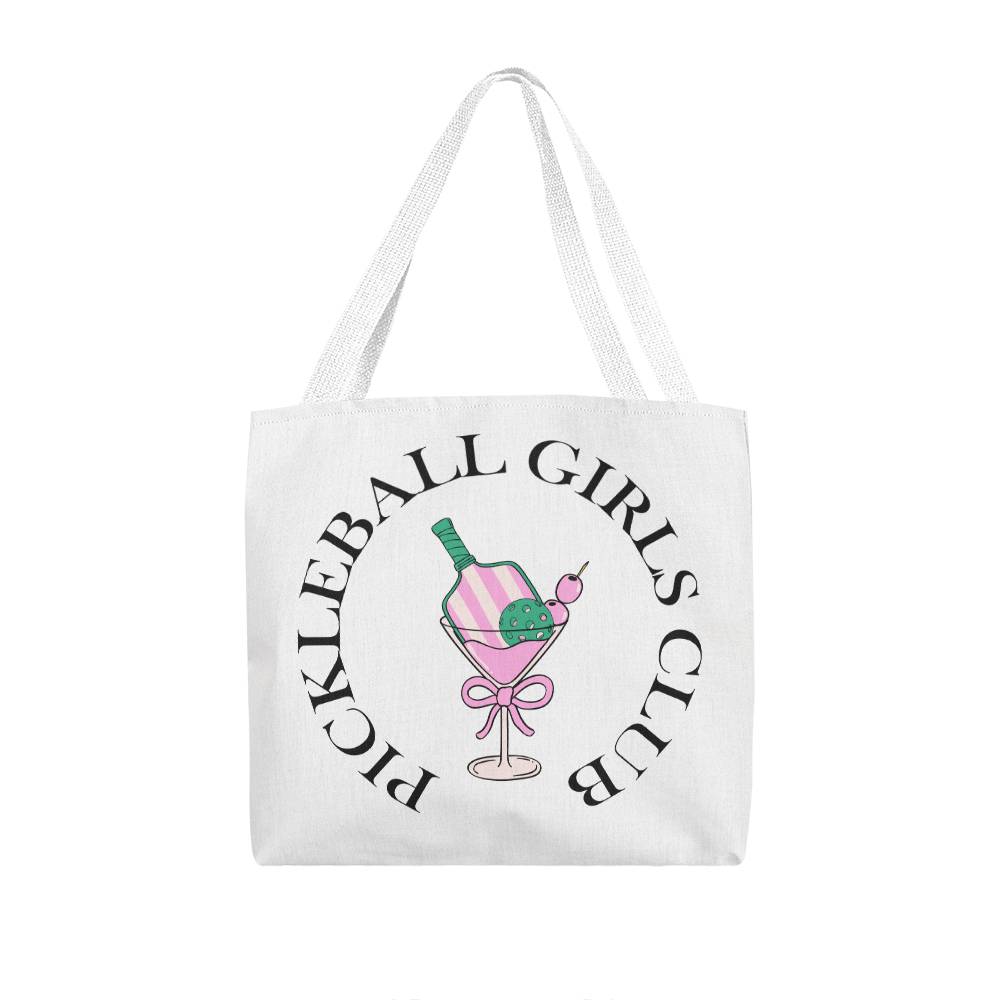 Step onto the court in style with this chic tote bag. Perfect for the discerning pickleball player who values both elegance and functionality, this tote bag blends classic country club aesthetics with a playful pickleball twist.